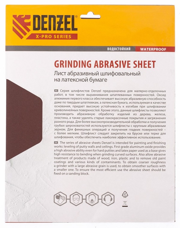 Шлифлист на бумажной основе, P 320, 230 х 280 мм, 5 шт, латексный, водостойкий Denzel